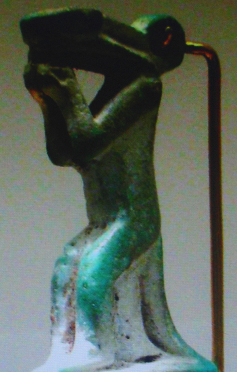 behind him. Both of these performances were found in tombs of the Third Intermediate Period, the majority of amulets are made of glazed faience, some from copper.( C. Andrews, Amulets of Ancient Egypt, p. 26.)